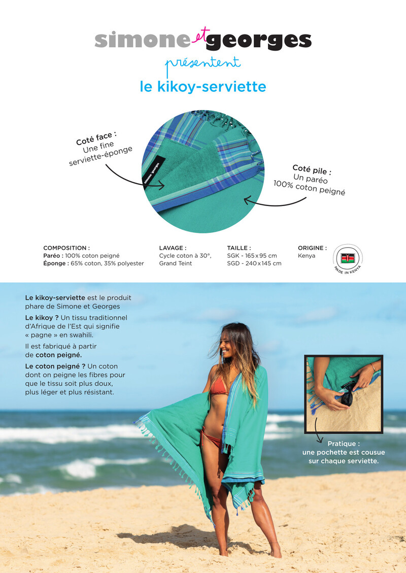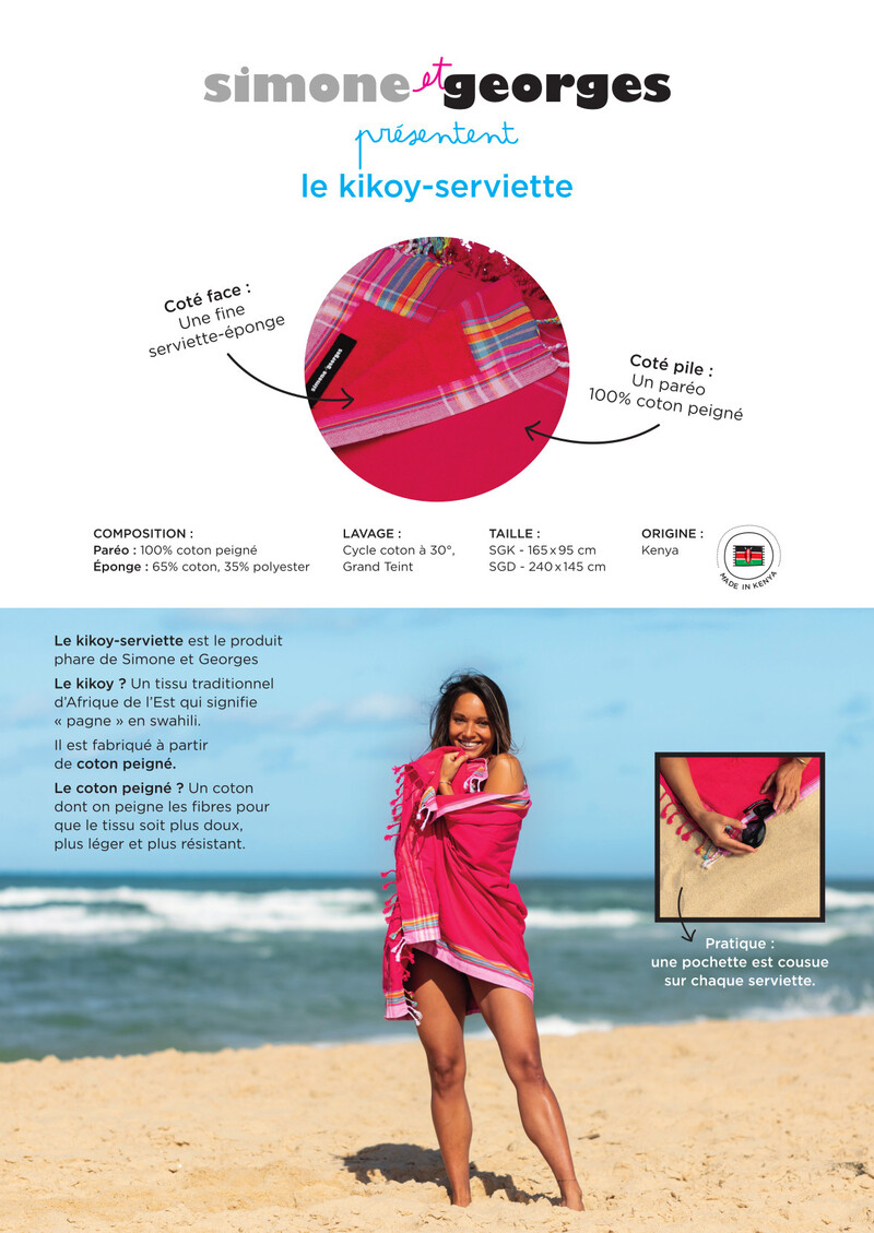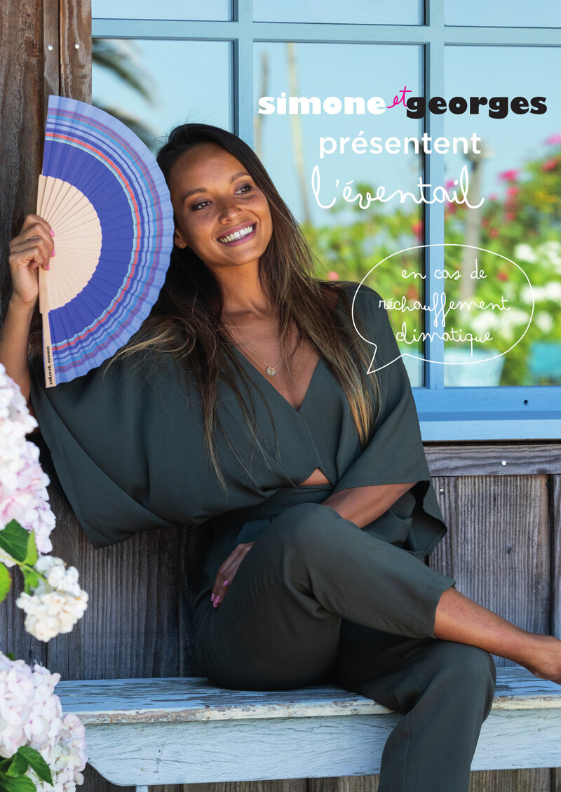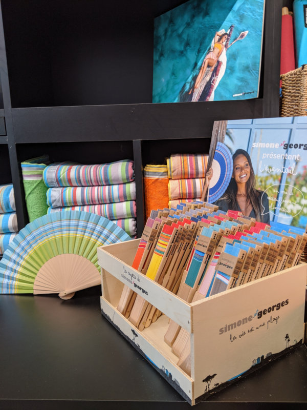 Chaque année on essaie de faire des nouvelles photos dans des endroits paradisiaques, vous pouvez allez voir notre lookbook d'ailleurs. Puis on sélectionne les plus belles et on fait des affiches avec, en format A3 cartonné le plus souvent (voir ci-dessous), pour accompagner vos mises en place en boutique. Pour les coussins et les éventails, on vous offre aussi ces petites cagettes en bois très pratique pour mettre sur vos comptoirs par exemple.