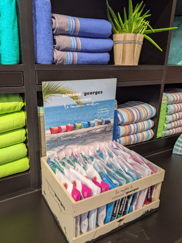 On ne vous le dira jamais assez, et en plus vous le savez déjà : 1/ plus vous avez de coloris différents, plus vous vendrez, c'est automatique. 2/ plus vous avez de quantité dans chaque coloris, plus vous vendrez. C'est vrai pour beaucoup d'autres types de produits que les nôtres. Un corner Simone et Georges c'est comme un magasin de bonbon : imaginez qu'il n'y ait que 3 couleurs de bonbon disponibles, et 2 bonbons de chaque, ça ne donnerait pas envie. Pour nos produits, prenez au moins une bonne dizaine de coloris, et 5 pièces de chaque pour avoir quelque chose de gourmand à présenter.